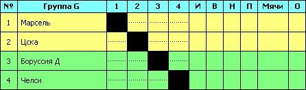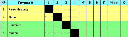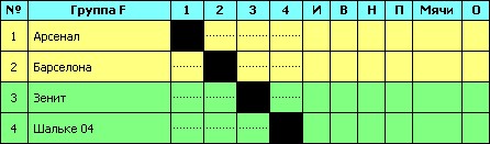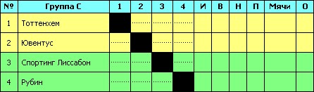 -После того как заполнили форму регистрации необходимо связаться со мной и оплатить вступительный взнос, после этого вы будете полноценно приняты в турнир! -Внимание! При регистрации участник сам не выбирает себе команду, а лишь пишет произвольное число от 1 до 32.Таким образом команда каждого участника будет определена с помощью жеребьевки!(номер указанный при регистрации соответствует номеру клуба, список клубов и соответствующие им номера находятся в этом архиве, который защищен паролем. Пароль я дам всем участникам после окончания регистрации. Состав групп:         -Результаты матчей необходимо записывать на  форуме в раздел "Лига Чемпионов", "Запись результатов" строго по образцу! -Статистику игр можно посмотреть на главной странице в правом верхнем углу. Выбираете название интересующего вас турнира и щелкаете на него.